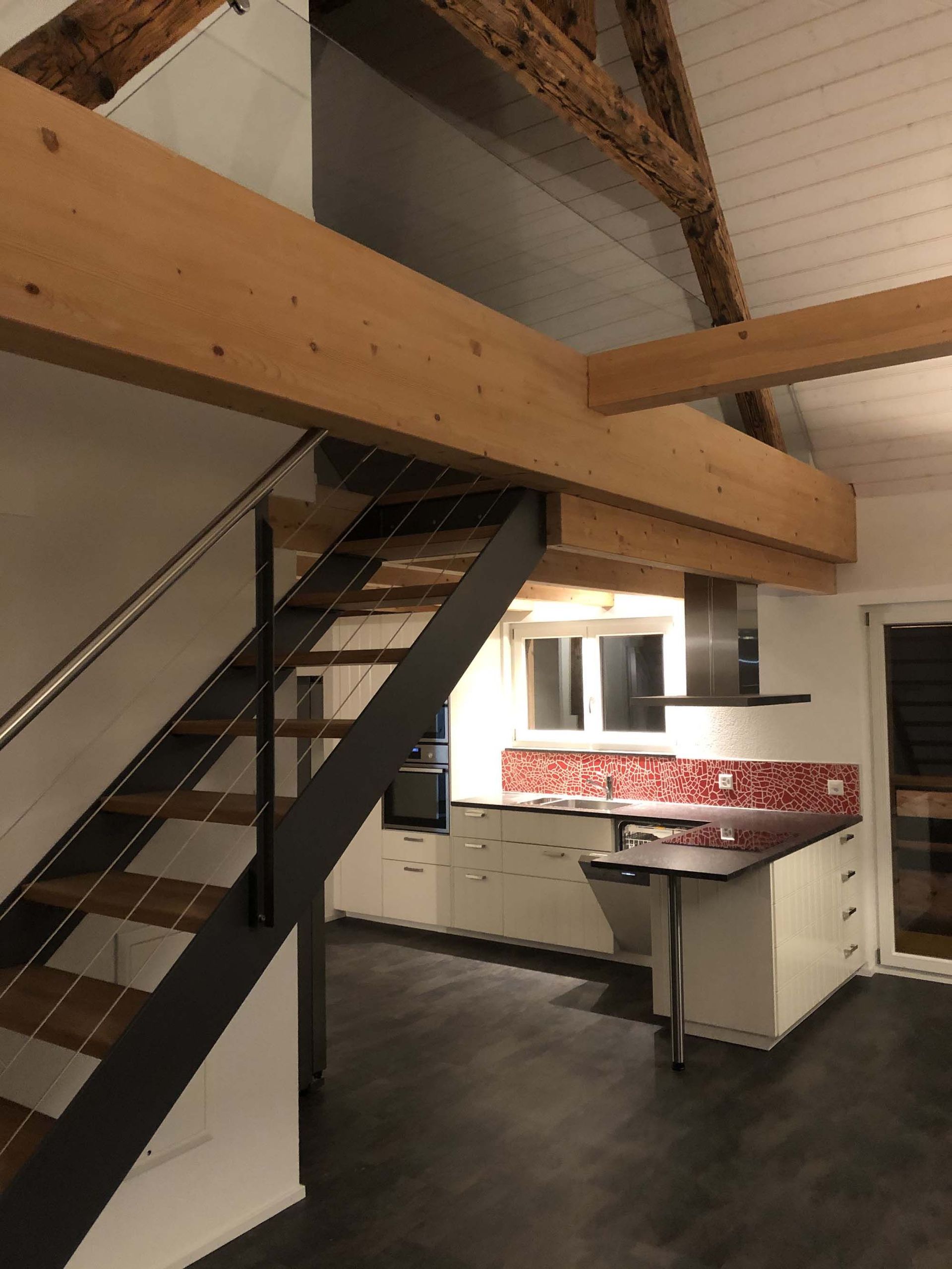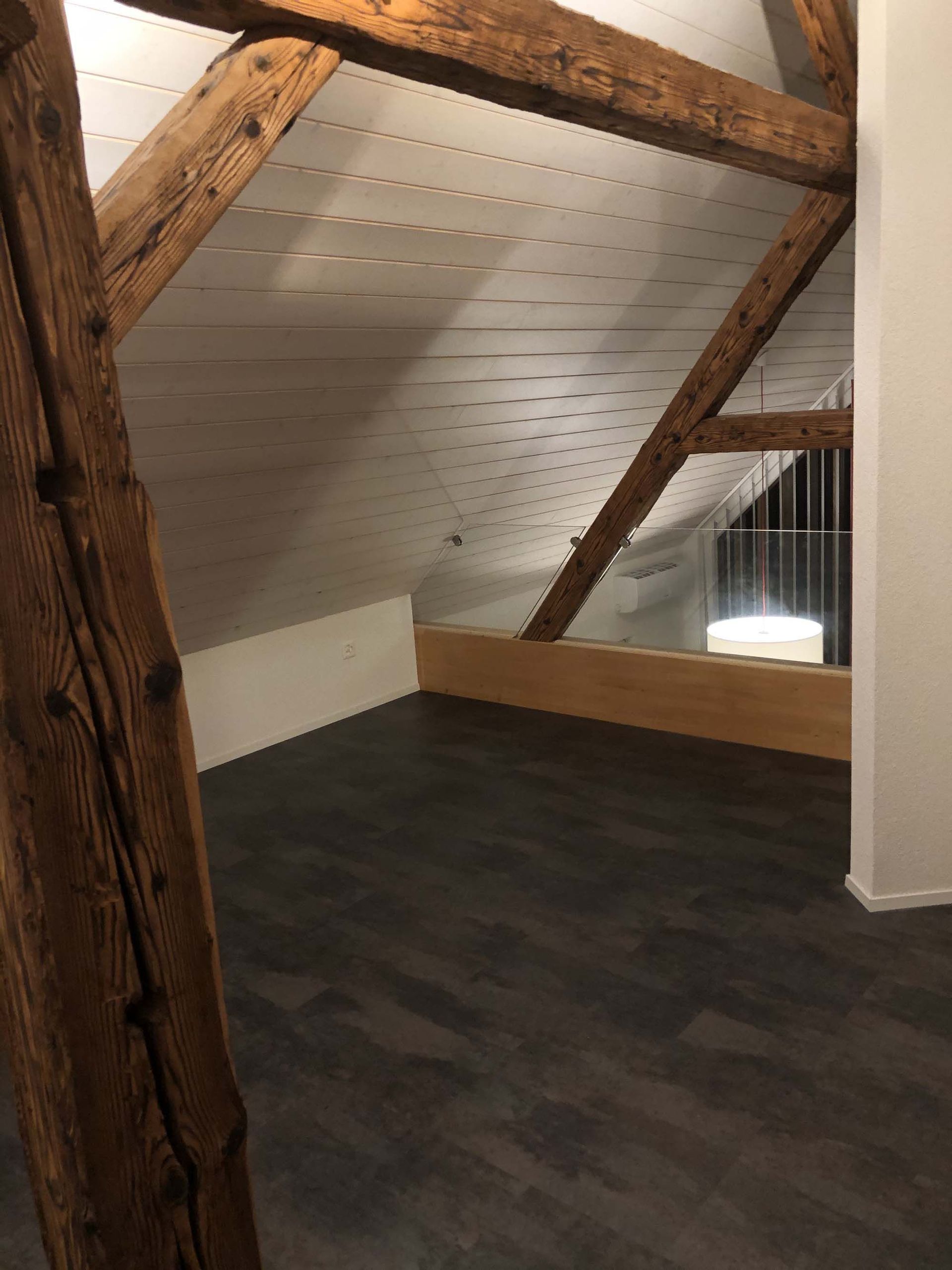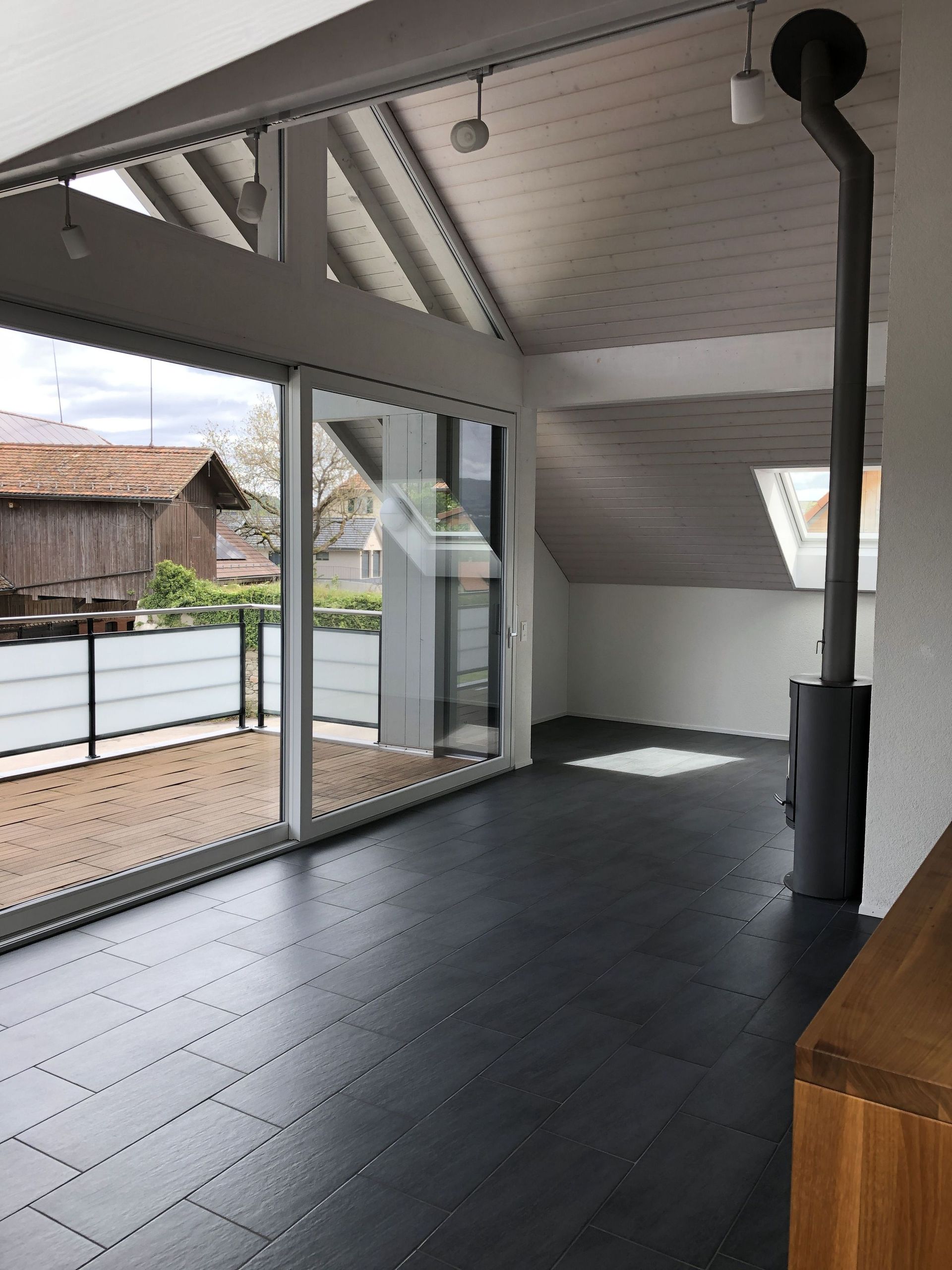 Die grosszügige 3.5-Zimmer-Dachwohnung verfügt über einen grosszügigen Wohn- und Essbereich, mit offener Wohnküche und einer Kochinsel sowie über ein Cheminée-Ofen und ein grosszügiges Badezimmer mit Eckbadwanne.