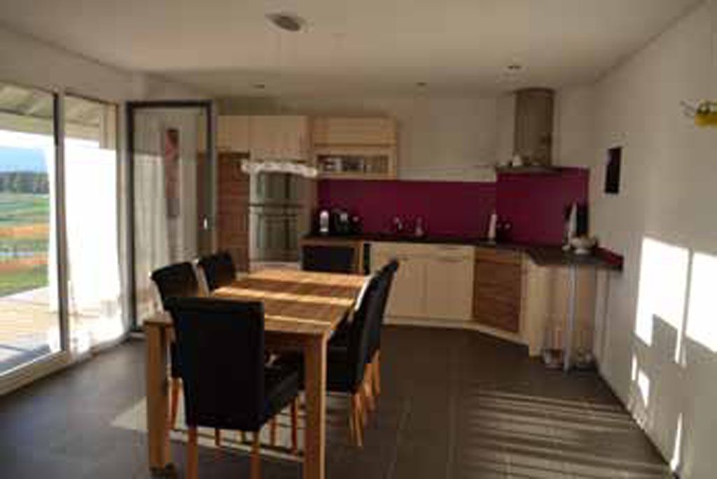 Die Wohnung befindet sich im ersten Obergeschoss und verfügt über einen grosszügigen Wohn- und Essbereich mit offener Wohnküche.